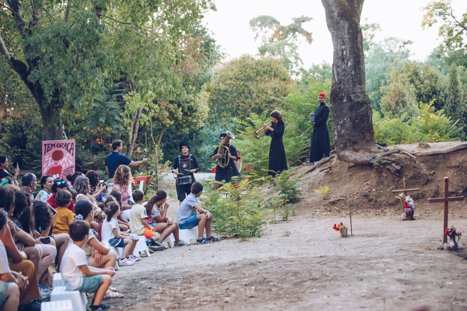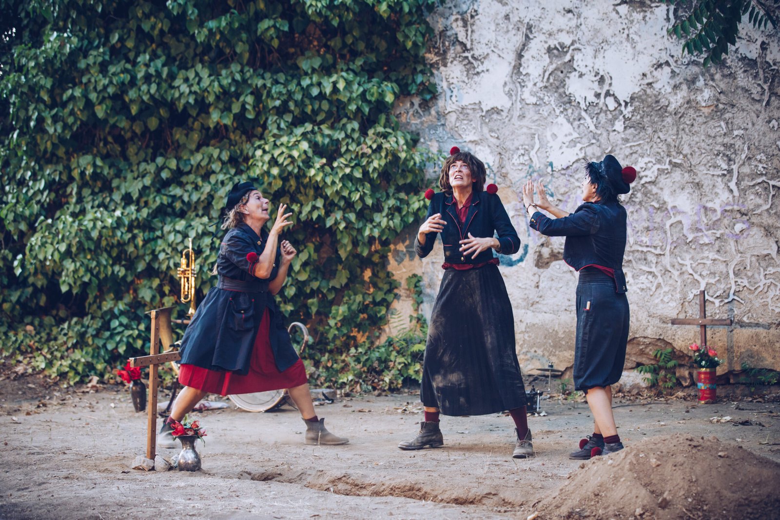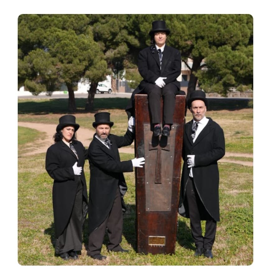 Quatre enterradors silenciosos es passegen per l’espai públic amb el seu taüt, tot cercant el millor lloc on instal·lar el seu particular «photocall» funerari. En la seva particular i absurda errància el públic formarà part de la seva divertida comitiva.