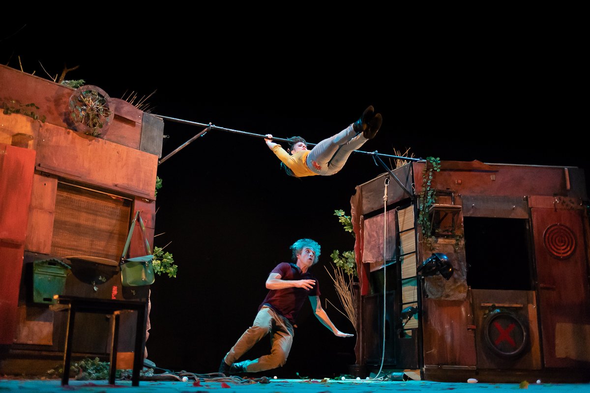 Un viatge a través de les emocions en un espai visual i sonor que embolcalla les escenes de circ acrobàtic i teatre gestual, donant forma a un espectacle orgànic, sensible i divertit.